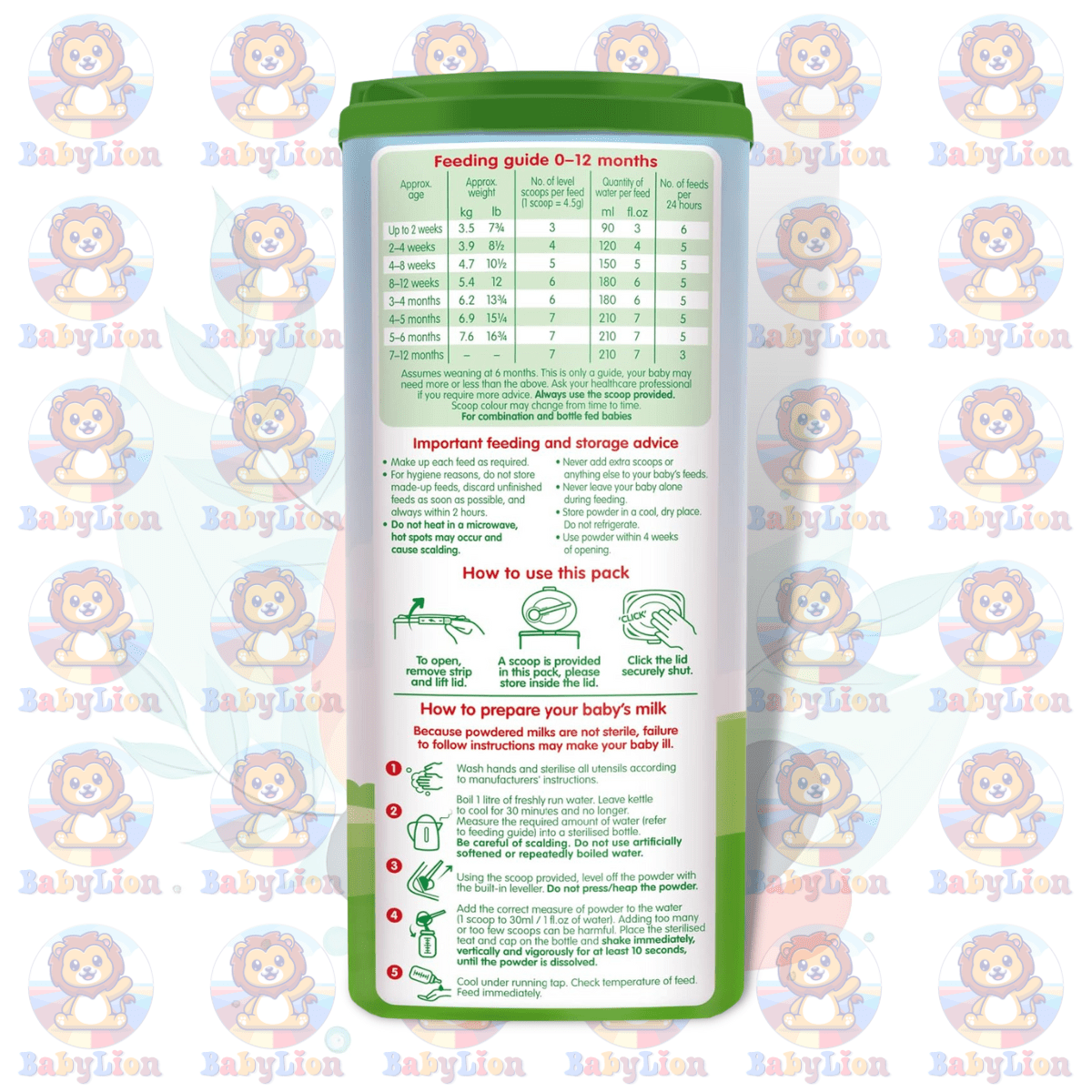 | Directions | Feeding guide 0-12 months, see packaging for detailed instructions. |
