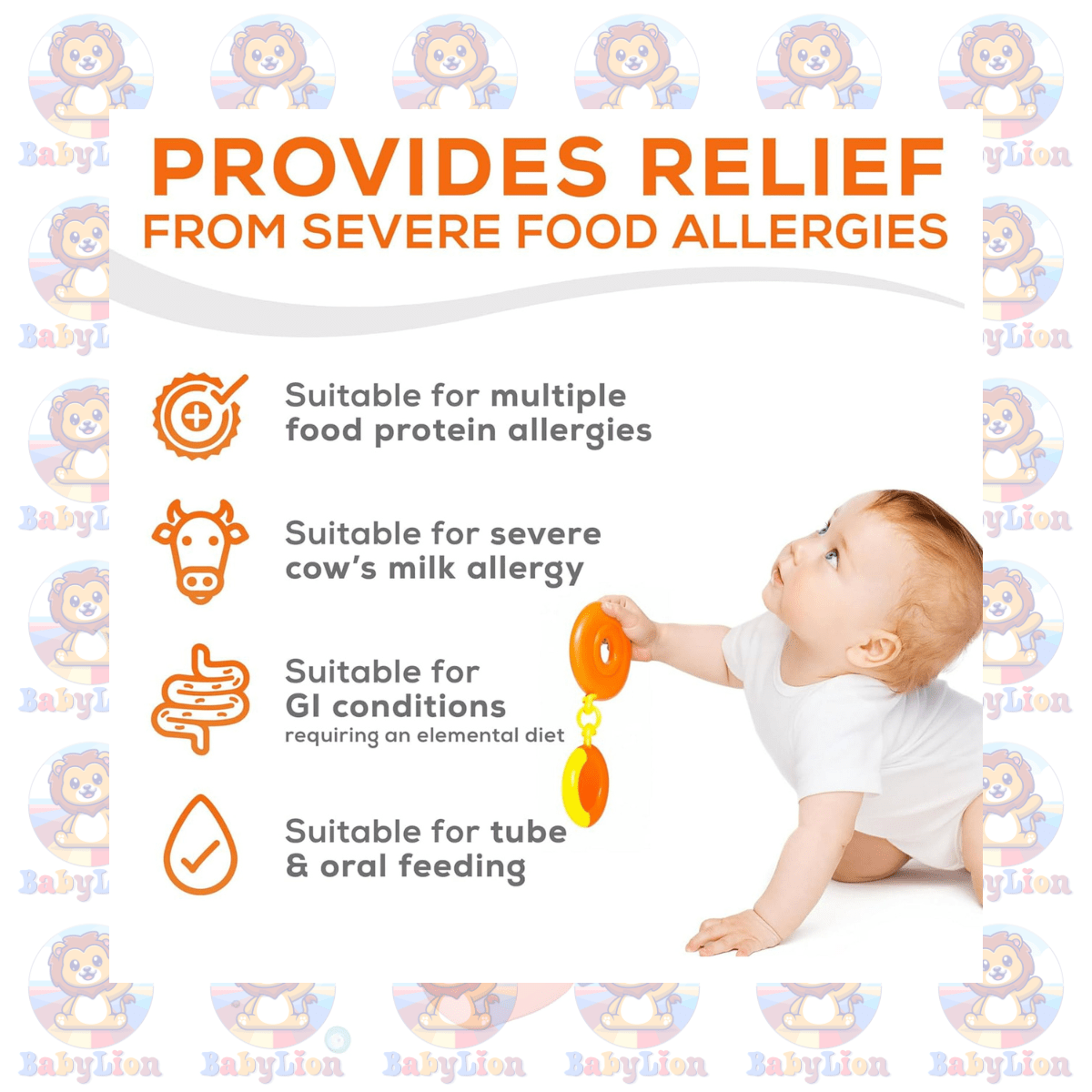 - Specially formulated for toddlers with severe cow’s milk and multiple food allergies.