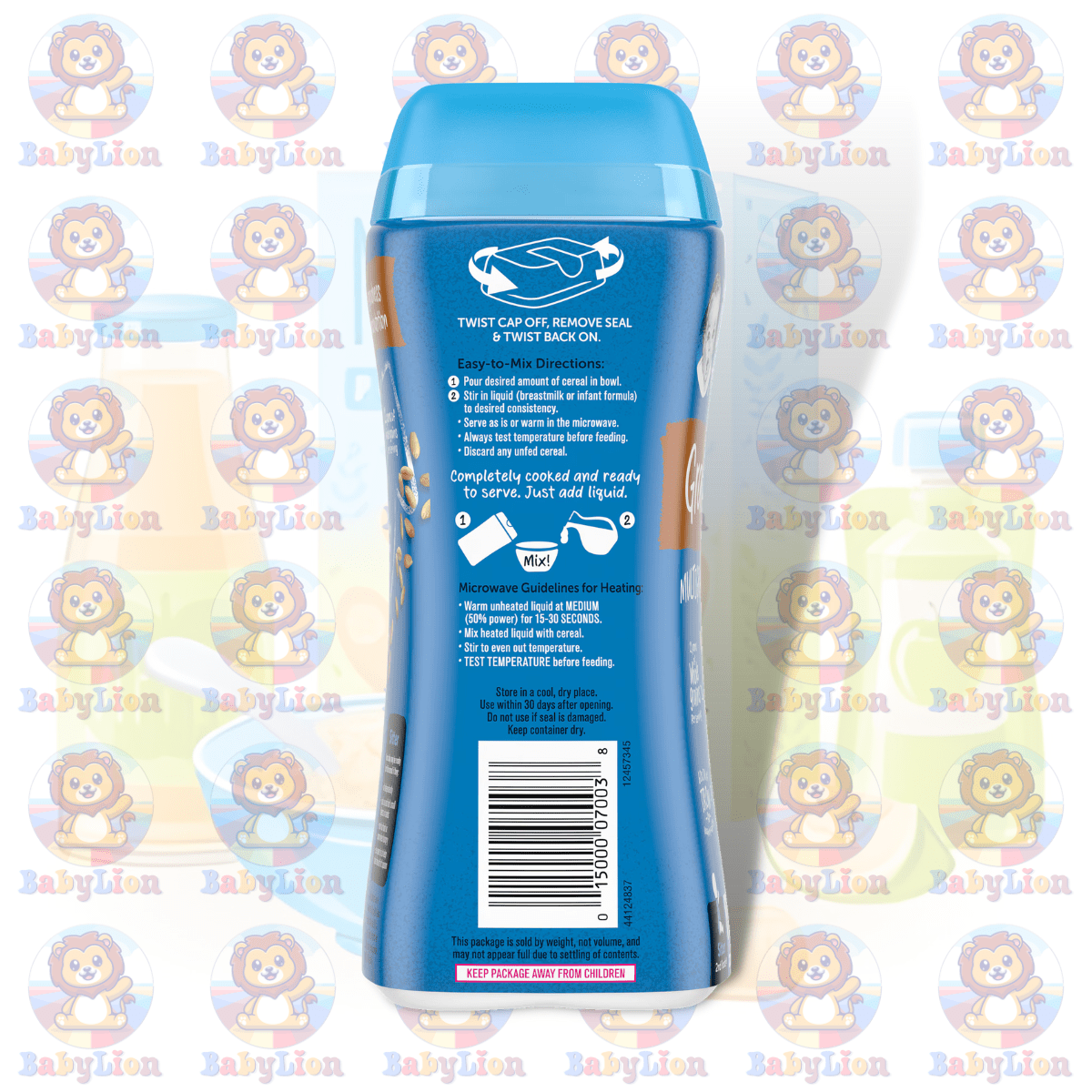 | Directions | Pour or spoon desired amount of cereal in a bowl. Stir in liquid (breastmilk or infant formula) to desired consistency. For toddler: Mix with milk, water, or GERBER® Juice. Serve as-is or warm. Discard any unfed cereal. Microwave guidelines provided for heating. Store in a cool, dry place. Use within 30 days of opening. |