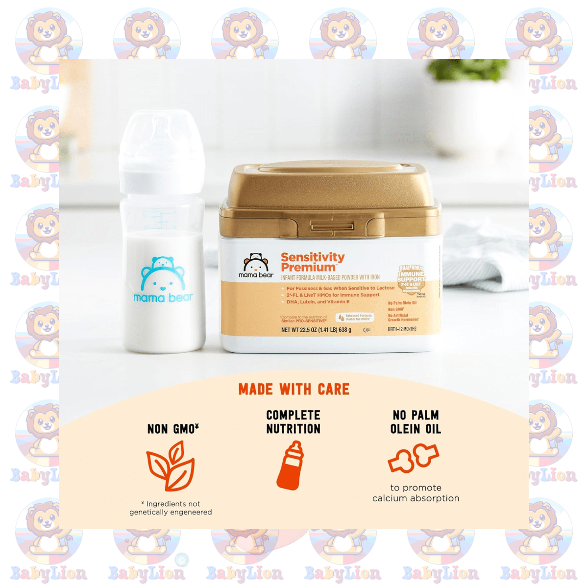 When compared to other formulas on the market, Mama Bear Sensitivity Premium Infant Formula stands out for its commitment to quality and affordability. It’s a non-GMO formula that provides complete nutrition without artificial growth hormones, offering a pure and wholesome alternative to breast milk.