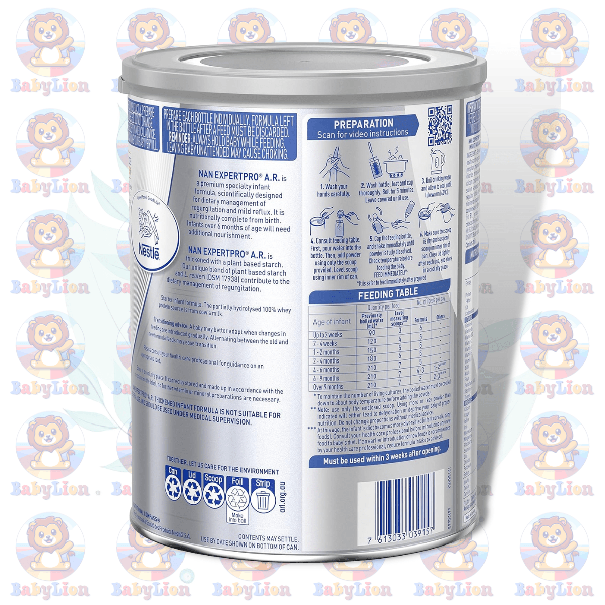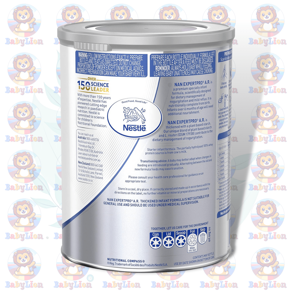 With over a century and a half of experience in infant nutrition, Nestlé stands as a pillar of trust and quality. The NAN EXPERTpro A.R. Infant Formula is a testament to this legacy, ensuring that your baby’s health is supported by a brand that has nurtured generations.