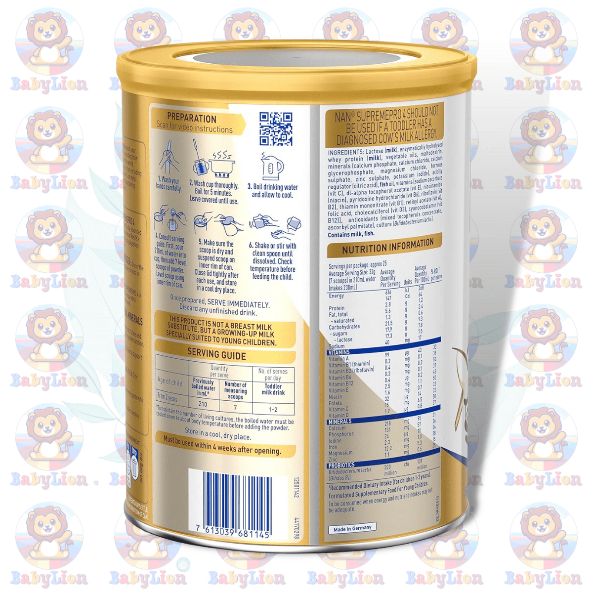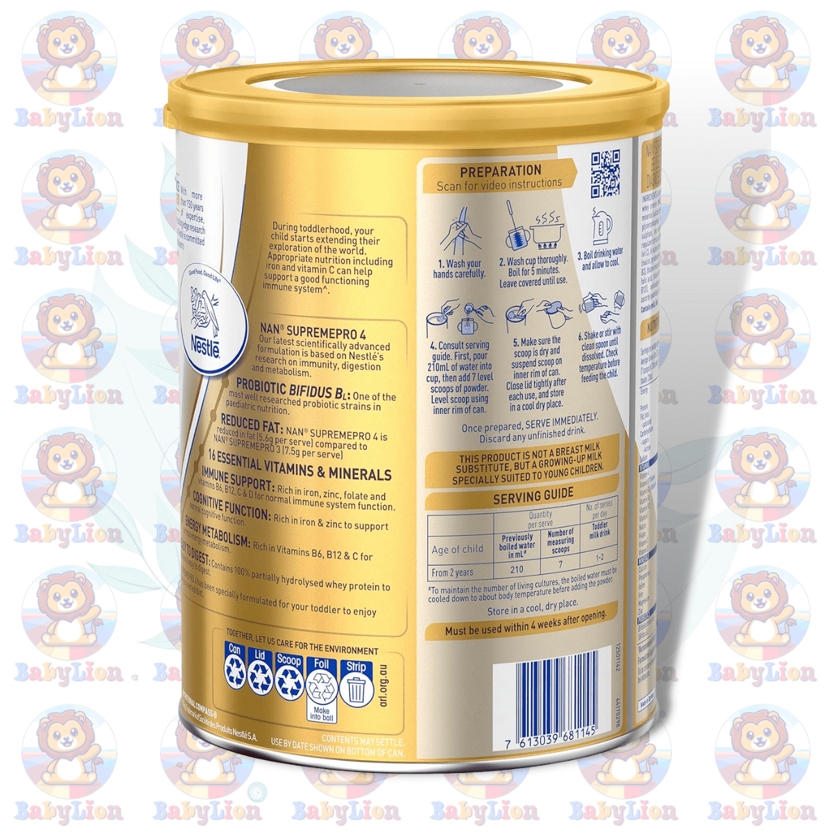 Nestle is a brand synonymous with trust and quality in the realm of paediatric nutrition. With over 150 years of expertise, Nestle has been at the forefront of research and innovation. The manufacturing process of NAN SUPREMEpro 4 adheres to strict quality control measures, ensuring that every scoop of milk drink powder is safe and nutritious for your child.