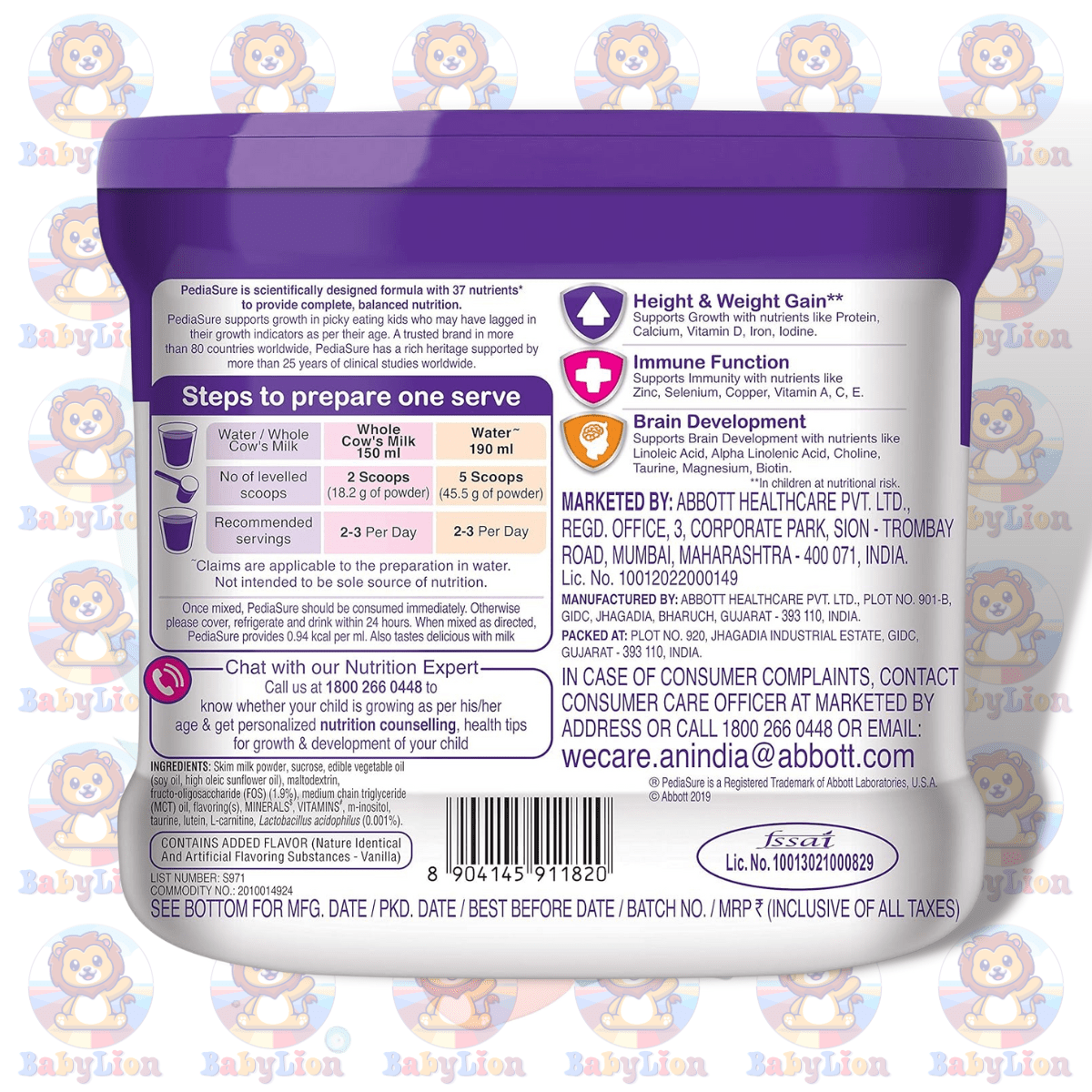 - Facilitates Height and Weight Gain: Growth nutrients in PediaSure are formulated to help increase a child's height and weight according to their age.