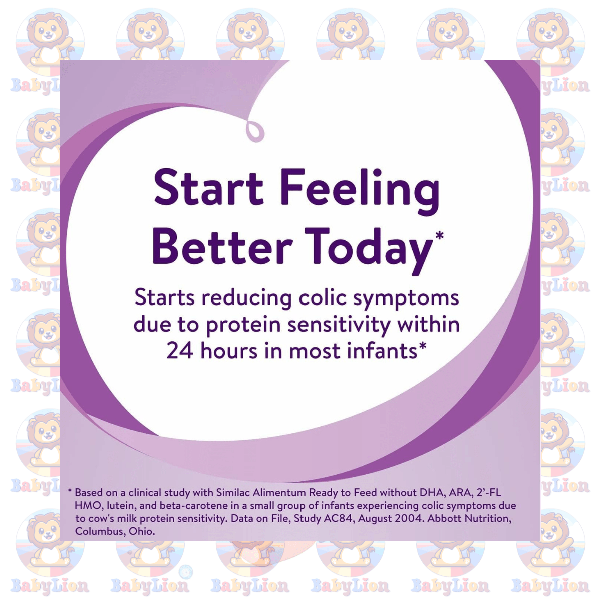 - Rapid Colic Relief: Similac Alimentum is clinically shown to reduce colic symptoms due to protein sensitivity within 24 hours, offering quick relief and happier times for both baby and parents.